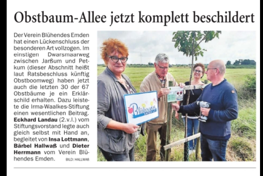 Lückenschluss in der Obstbaum-Allee admin 10. September 2021 Altostfriesische Obstbaumsorten 0 Kommentare Quelle: Emder Zeitung vom 9. September 2021 Beitrags-Navigation Zurück Vorheriger Beitrag: Bienen, Blüten und Bäume statt Sport- und BiologieunterrichtWeiter Nächster Beitrag: Obstsaftpressen Schreibe einen Kommentar Antworten abbrechenDeine E-Mail-Adresse wird nicht veröffentlicht. Erforderliche Felder sind mit * markiertKommentar * Name * E-Mail * Website Meinen Namen, meine E-Mail-Adresse und meine Website in diesem Browser für die nächste Kommentierung speichern.