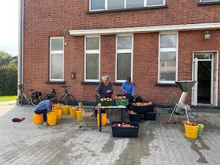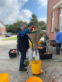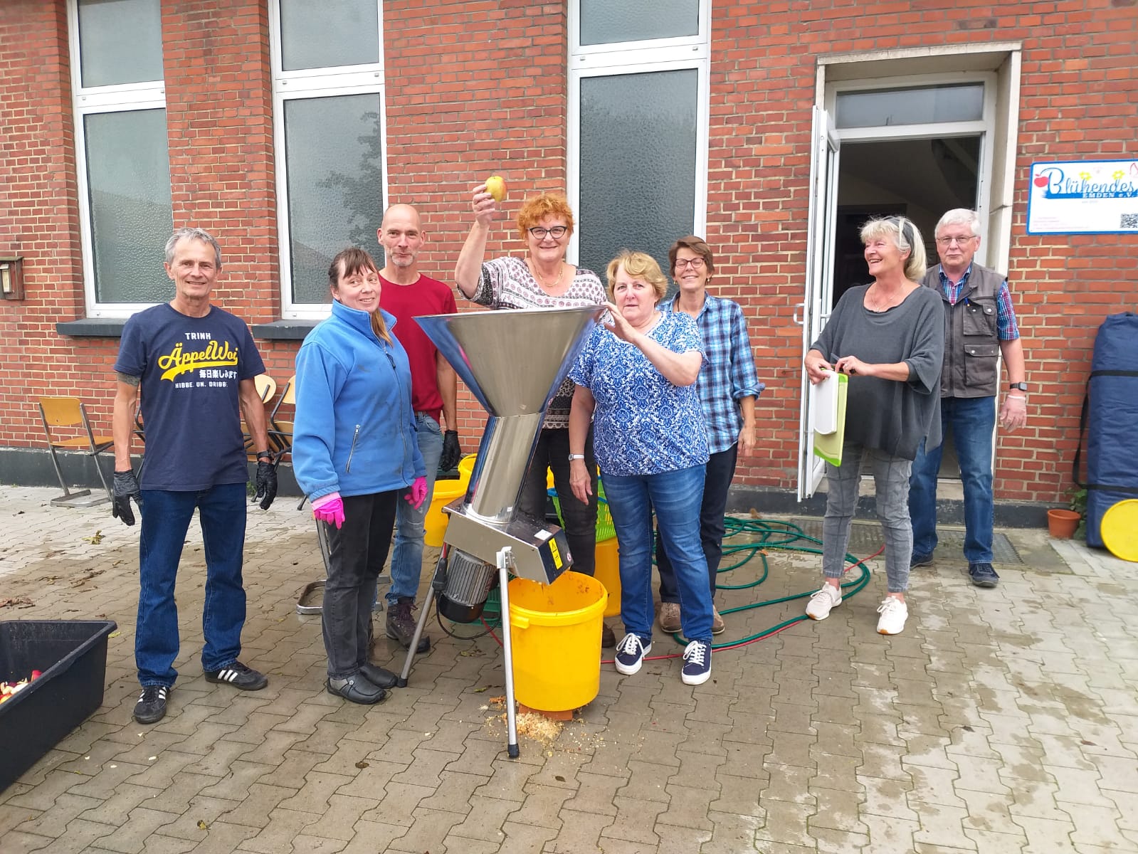 Am Samstag, den 25.09., fanden sich am frühen Vormittag die ersten Mitglieder und Freunde des Vereins „Blühendes Emden“ zum Apfelsaft pressen ein. Im Laufe des Tages kamen weitere Helfer und Helferinnen dazu.